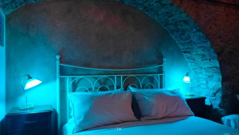 Situata nel cuore di un casale in pietra, la Camera Celestina è pensata per chi desidera rallentare e ritrovare equilibrio in un ambiente intimo e luminoso.